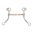 Le mors d'entraînement Metalab avec rouleaux en cuivre et en acier inoxydable est un excellent premier choix lors de la transition d'un filet. L'embout buccal à articulation unique est doté de rouleaux en cuivre et en acier inoxydable pour favoriser la salivation et adoucir la bouche. L'articulation unique crée une pression sur la langue. Les joues comportent une tige légèrement inclinée vers l'arrière et un achat plus court. Conçu pour être utilisé avec une sangle gourmette. Crée une action indirecte avec effet de levier. Fabriqué en acier inoxydable avec rouleaux en cuivre.