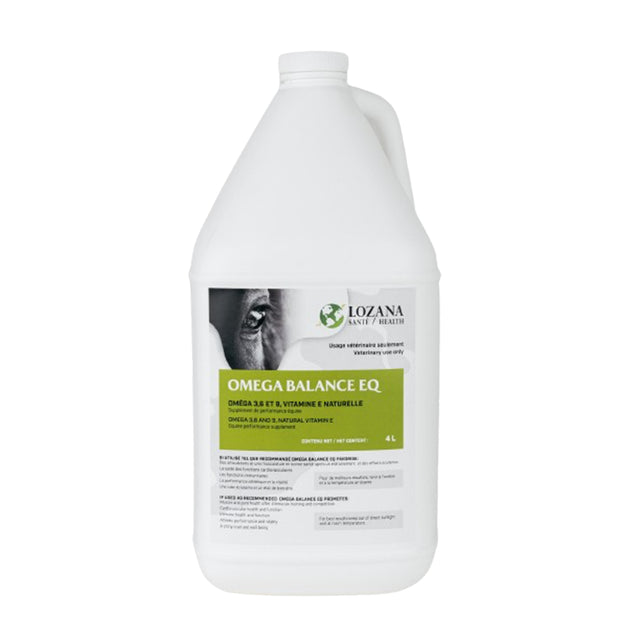 Omega Balance EQ de Lozana Health est un produit à base d'huile de caméline qui favorise la santé musculaire et articulaire après un entraînement ou une compétition intense, ainsi que la santé et le fonctionnement cardiovasculaires et immunitaires. Un équilibre optimal d'omégas 3, 6 et 9 favorise les performances sportives et la vitalité, une robe brillante et le bien-être général du cheval.