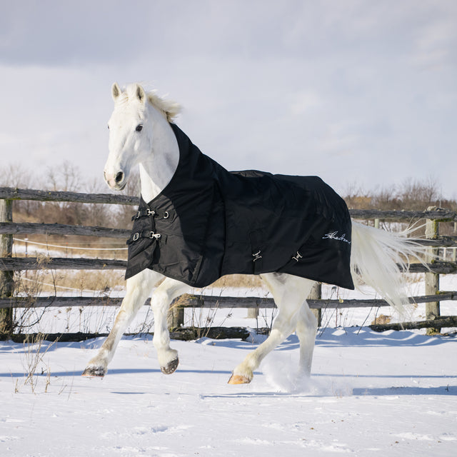 Doté d'un col allongé pour plus de chaleur et une protection optimale contre les intempéries hivernales, le Shedrow Comfort Neck Turnout est composé d'une enveloppe extérieure robuste en 1200D et d'une doublure en nylon polissant. Le revêtement en Téflon DuPont et la membrane hydrophobe intégrale offrent une excellente imperméabilité et respirabilité. L'absence de coutures dorsales, associée à des coutures latérales étanchées et scellées, réduit encore les risques d'infiltration d'eau, tandis que 300 grammes de rembourrage en polyester chaud isolent la chaleur corporelle. Il est équipé de sursangles croisées en biais, de sangles avant doublées en nylon avec pattes escamotables, de sangles arrière pour les jambes, d'accessoires de qualité supérieure, de passepoils contrastés et de coutures renforcées aux points de tension.