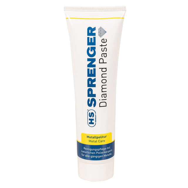 La pâte diamantée Sprenger utilise des granulés de polissage microfins pour nettoyer et faire briller toute votre argenterie. En une seule utilisation, elle protège contre la rouille et maintient une finition miroir hautement polie, tout en prolongeant la durée de vie de vos étriers, conchos, mors, argenterie de selle, accessoires de harnais, etc. La formule non acide est douce pour votre peau et sans danger pour votre manucure. Livré dans un tube pratique de 100 ml.