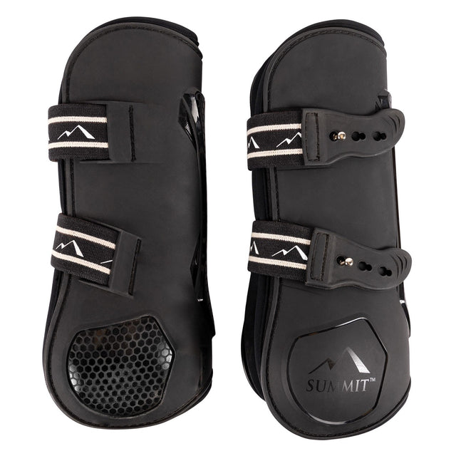 Le protège-tendon Summit Open Front offre une construction élégante avec une forme anatomique et une fonctionnalité supérieure, adaptée à l'école quotidienne ou sur le ring. Dispose d'un double système de ventilation pour aider à évacuer la chaleur de la jambe du cheval. Complet avec des fermetures élastiques à crochets et à languettes pour un enfilage et un retrait faciles.