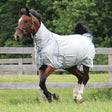 La couverture intégrale en maille légère couvre les zones sensibles avec une extension de cou haute et une large bande ventrale. Un gousset d'épaule profond offre une liberté de mouvement maximale tandis que le matériau en maille deluxe léger assure une circulation d'air maximale. Des fermetures Velcro doubles et un attache Velcro en forme de D sous la gorge garantissent un ajustement plus sécurisé. Complet avec des courroies de sangles arrière pour les jambes.