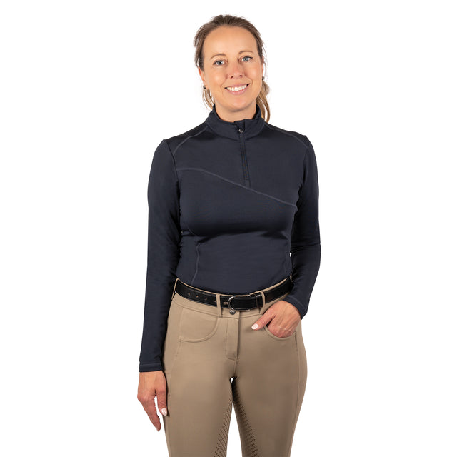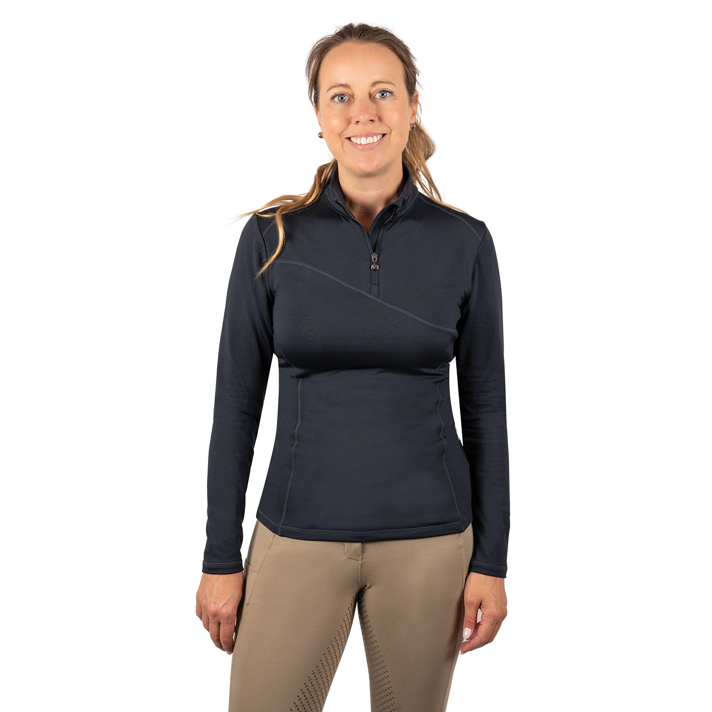 Exclusif à Greenhawk ! Le haut TemTeq Equestrian Jessie offre une conception doublée en polaire pour évacuer efficacement l'humidité et vous aider à rester au chaud et au sec. Complet avec une fermeture éclair 1/4, une surface extérieure lisse qui n'accumule pas le foin ou la saleté, des coutures plates verrouillées et une coupe féminine.