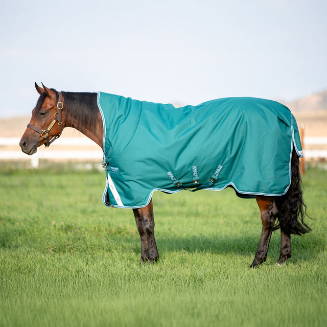La couverture Amigo Bravo 12 Wug Turnout est la couverture de poids moyen idéale pour les chevaux étroits au garrot haut ! Avec son encolure haute originale, cette couverture d'extérieur de 250 g est spécialement conçue pour un ajustement parfait tout en éliminant la pression au garrot. Son extérieur robuste en polyester 1200D, imperméable et respirant, présente une encolure haute pour un ajustement parfait et une élimination de la pression au garrot grâce à un système de fermeture en V. La couverture offre une liberté de mouvement renforcée par les arches avant et arrière uniques de la couverture, qui permettent une grande amplitude de mouvement et maintiennent la couverture sous le ventre, avec une couverture supplémentaire pour un confort accru au pré. Trois sursangles croisées maintiennent la couverture bien en place, avec des bandes réfléchissantes pour une meilleure visibilité. La doublure brillante offre un toucher soyeux sur la peau et la robe, garantissant à votre cheval un confort optimal. Une couverture au design intelligent pour des propriétaires de chevaux avisés !