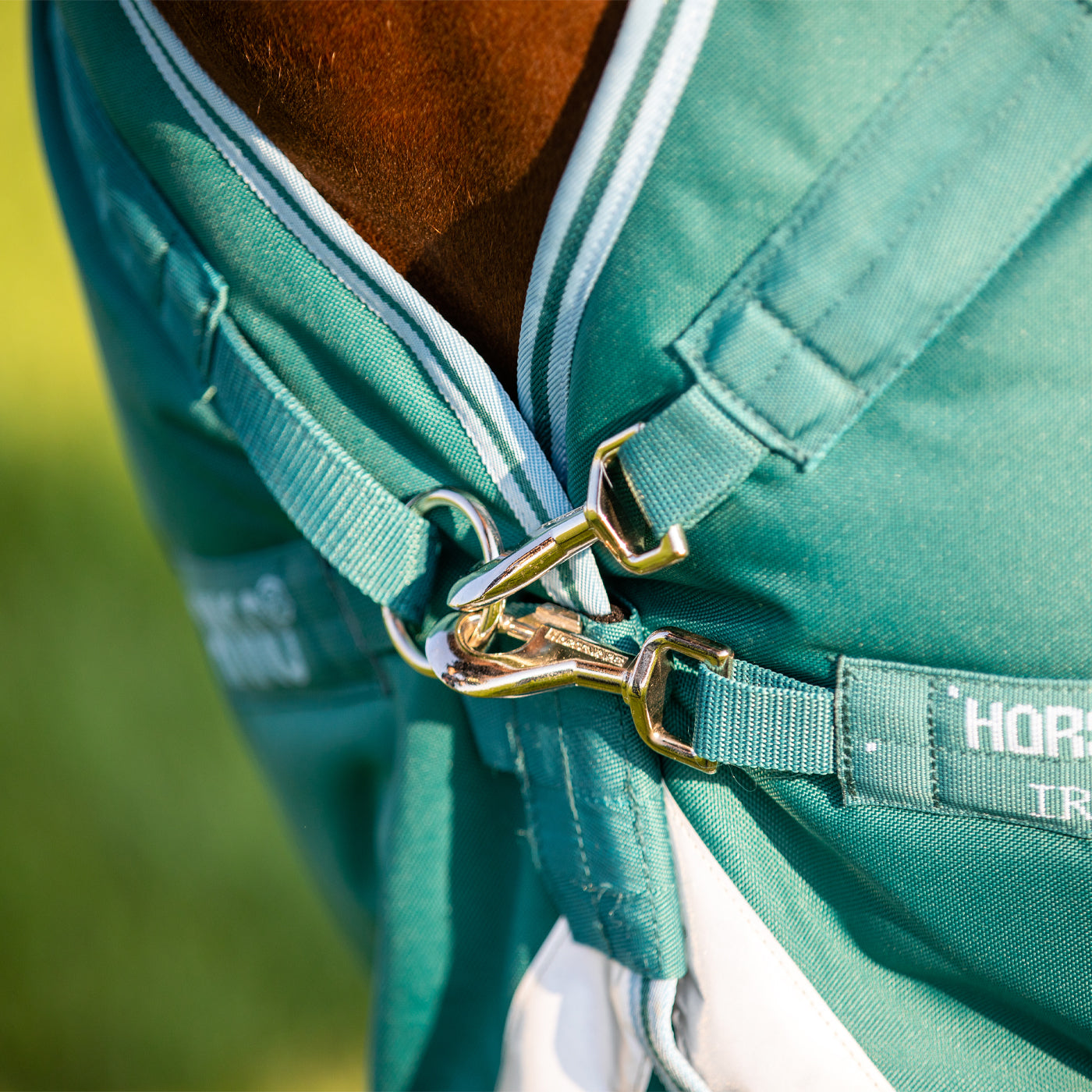 - Disque avant - Pour un cheval à poitrine étroite, nous suggérons une couverture ou un drap doté de notre fermeture à disque avant.