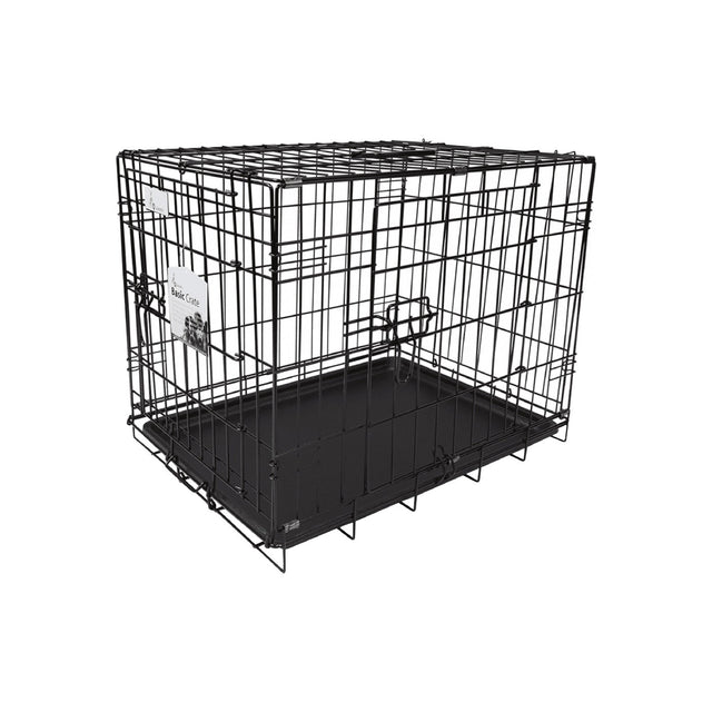 La cage pour chien à double porte Unleashed Basic est un choix économique pour le dressage, le chenil ou le transport. Cette caisse est facile à assembler, ce qui la rend parfaite pour les voyages. Les doubles portes pratiques à l'avant et sur le côté de la caisse sont sécurisées par des loquets de verrouillage. Livré dans une finition époxy noire durable et résistante à la corrosion. Comprend un panneau séparateur et un plateau inférieur en plastique. Mesure 19"L x 12"L x 14"H.