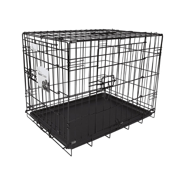 La cage pour chien à double porte Unleashed Basic est un choix économique pour le dressage, le chenil ou le transport. Cette caisse est facile à assembler, ce qui la rend parfaite pour les voyages. Les doubles portes pratiques à l'avant et sur le côté de la caisse sont sécurisées par des loquets de verrouillage. Livré dans une finition époxy noire durable et résistante à la corrosion. Comprend un panneau séparateur et un plateau inférieur en plastique. Mesure 48"L x 30"L x 32"H.