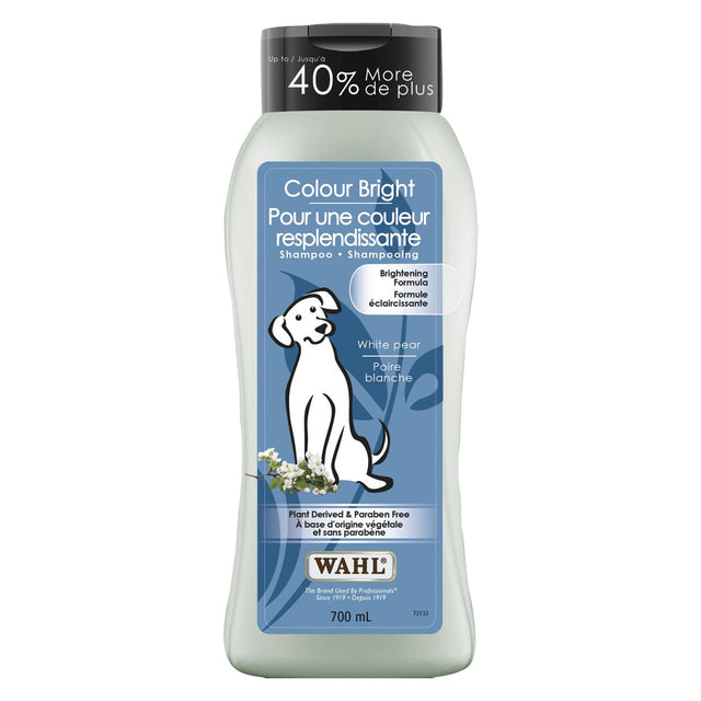 Le shampooing Wahl Whitening Color Bright contient de la poire blanche et d'autres exhausteurs de couleur naturels pour aider les robes blanches à paraître plus blanches et les couleurs plus lumineuses ! Sans paraben.