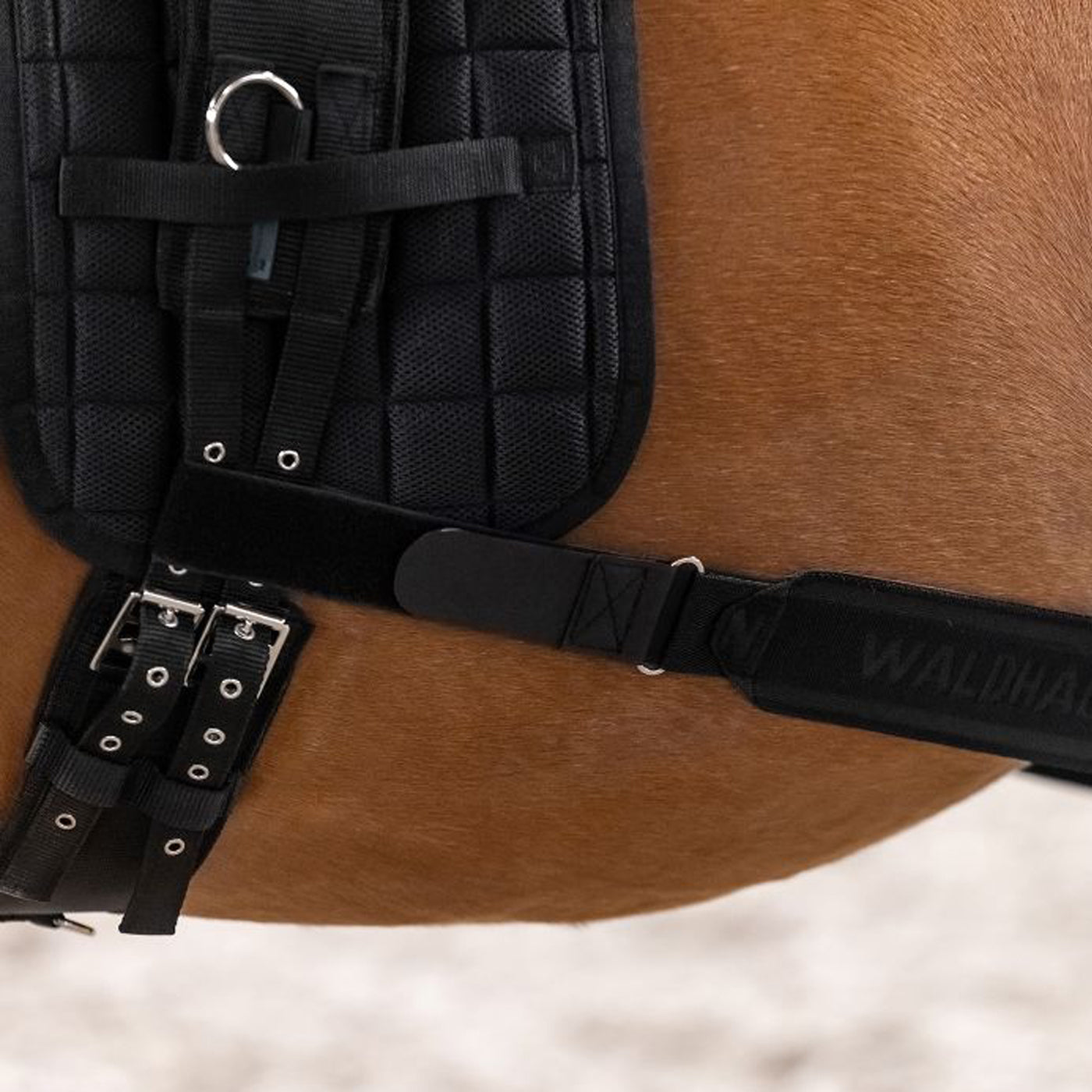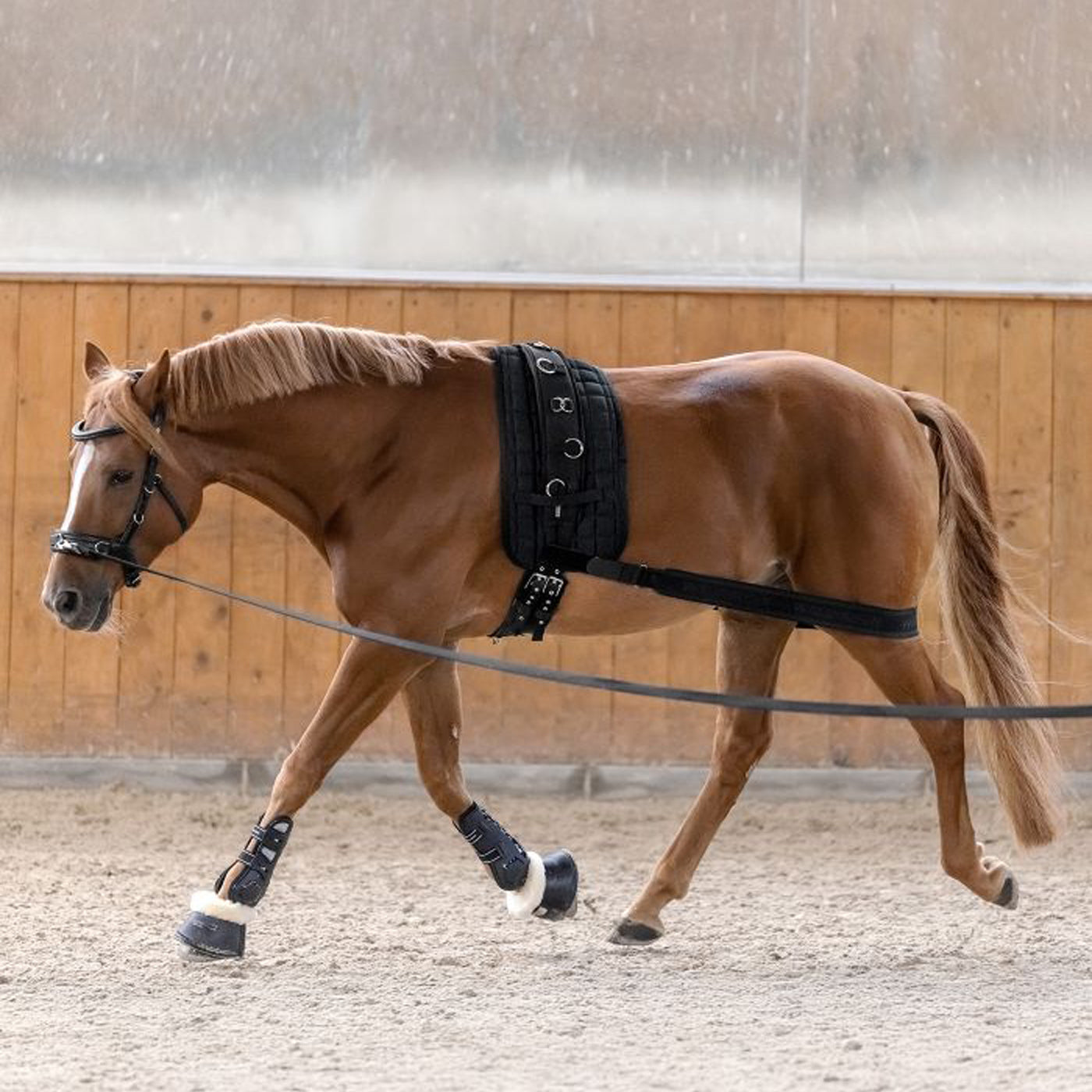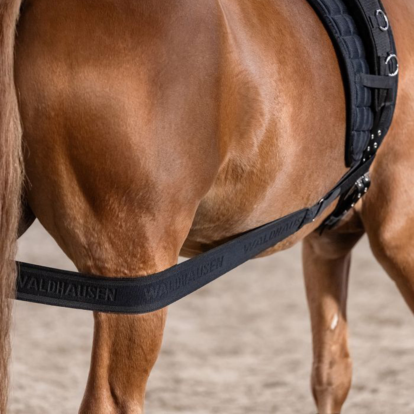 Une aide spécialement conçue pour activer l'arrière-main du cheval. Le soutien ciblé améliore la capacité du cheval à se propulser sous son centre de gravité, et sa matière hautement élastique assure un ajustement optimal et une utilisation facile. Grâce à sa fermeture Velcro de chaque côté, la bande se fixe rapidement et facilement à la sangle de longe et à la sangle de selle, et sa longueur est réglable pour s'adapter individuellement à chaque cheval. Longueur non extensible réglable d'environ 1,70 m à 1,90 m.