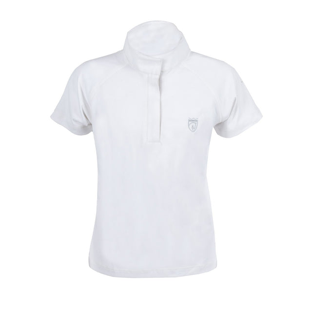 La chemise de concours à manches courtes Elation Platinum Florence vous aide à rester au frais tout en rivalisant avec le tissu EquiCool et la maille design dans le dos pour une respirabilité accrue. Modèle à manches raglan et quart de zip sur le devant.