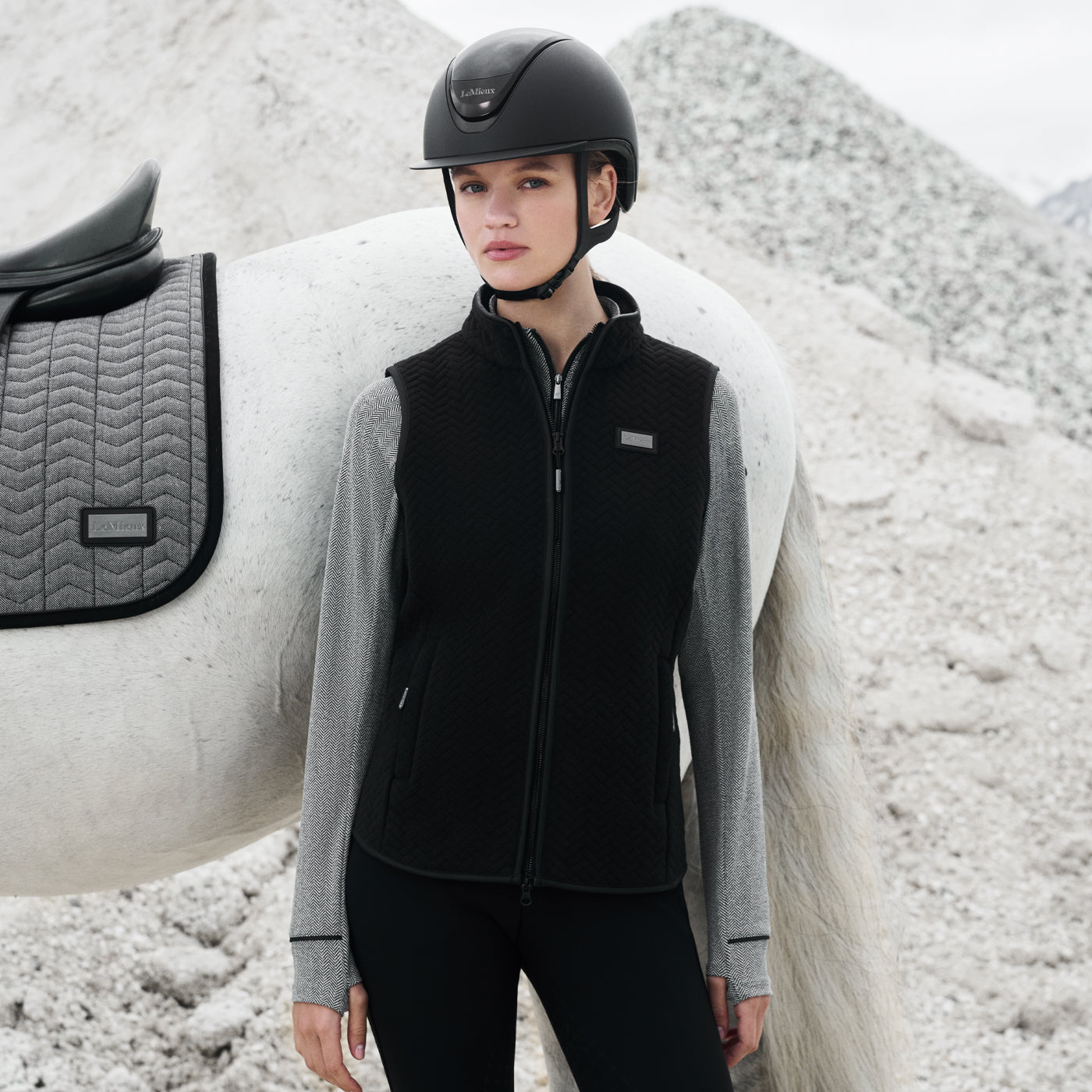Ce gilet polaire incontournable arbore un look raffiné avec son motif à chevrons matelassé thermosoudé. Doté d'une bordure mate et d'un ourlet arrondi, il apporte une touche technique à cette pièce à superposer, idéale pour la selle. Une fermeture éclair à double sens vous offre différentes options de port, et un badge LeMieux en caoutchouc et métal est assorti à la collection LeMieux Aspen.