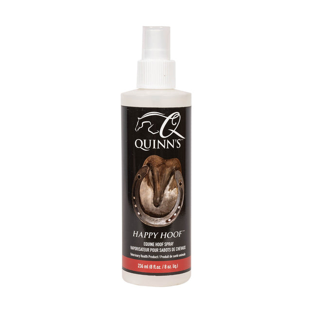 Le spray pour sabots Happy Hoof de Quinn favorise le maintien de sabots en bonne santé. Conditionné dans un flacon pulvérisateur pratique.