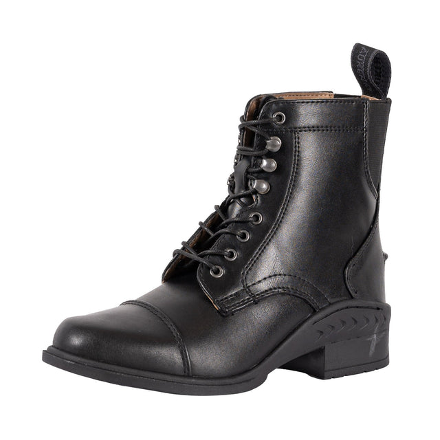 Created in durable, easy-to-clean vegan leather and finished with detailed stitching, elastic inserts at the heels, pull tab, and spur rest. Lace-up design offers a more customizable fit. A supportive footbed and sole offer outstanding comfort.